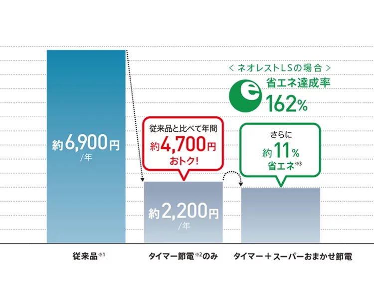 待機時の保温電力を抑え、電気料金を大幅に節約できます。